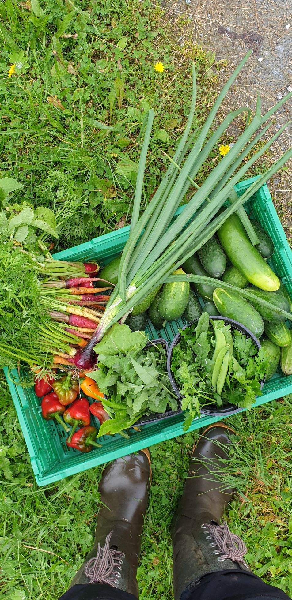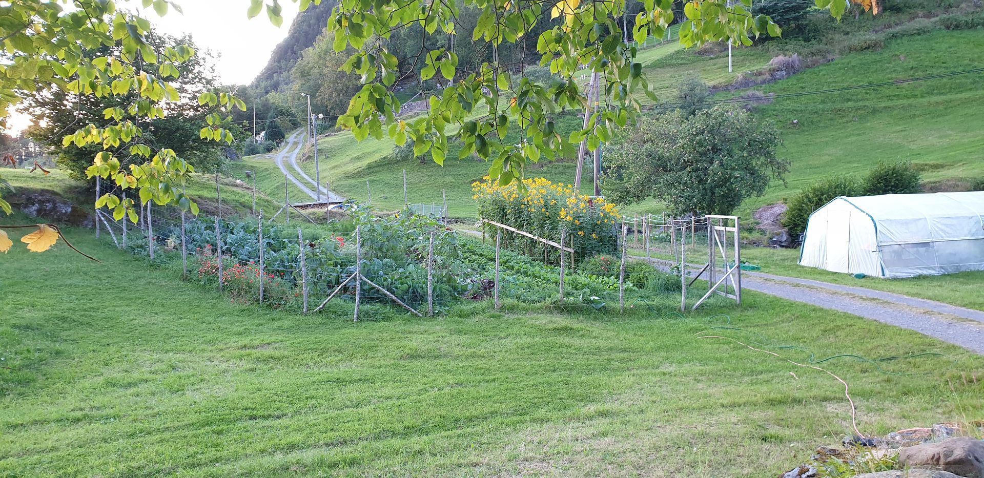 Sommaren 2020 starta me opp grønsaksproduksjon, mesteparten av dette nyttar me i kafèen vår. I tillegg får våre buande gjestar hauste litt grønnsaker til eige bruk medan dei er gjestar hos oss.